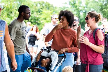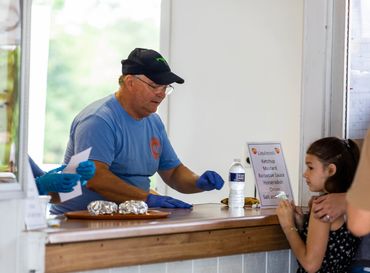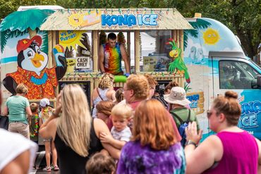 Food vendors set up on the blacktop, pavilion and in the community center.